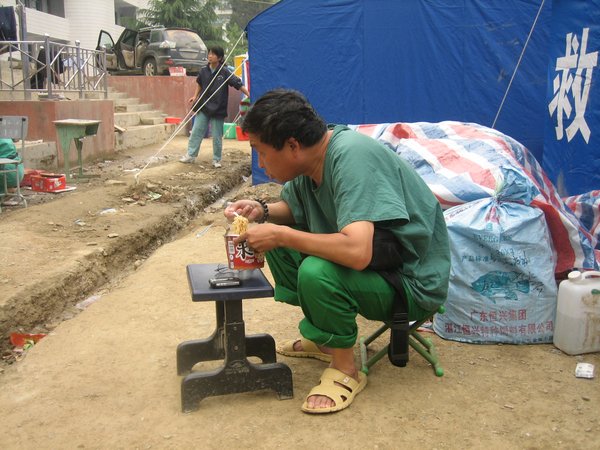 芮景同志作为一名共产党员、一名医务工作者、一名院长,芮景同志首先向卫生厅请战,到灾区去,到此刻党和人民最需要的地方去!家中一位老人生病在床,妻子工作繁忙,家中连照料的人也没有。老人理解他,嘱咐他注意安全。正如他在青川的夜晚,在灾区的帐篷中抒发的《与妈妈对话》那样:妈妈,儿在四川,正迎战一场巨大的灾难。原谅儿,因国家有难,儿不能服侍在您身旁。好儿子,自小妈妈就告诉你——把百姓装在心上。妈妈虽年迈但明事理,知道我儿是个热血男子汉。妈妈,儿也曾胆怯——大地撕裂,山河摇晃,断壁里血肉残肢,瓦砾里躯体已冰凉……堰塞湖犹如悬在头上的剑,不时的余震让儿心惊胆战,山体滑坡瞬间将鲜活的生命埋葬!妈妈,儿——没有退却,废墟上,没有水电,儿啃着干粮;与死神抗争,没有白昼黑夜,儿为着每个求生的目光。好儿子,妈妈疼你,你没让我失望。当年,你踏入医学的殿堂,就赋予了你救生的神圣与辉煌,大爱无疆,生命将注入新的华章。妈妈,人生有许多磨难,当独自面对,生命之光尤其黯淡。世界牵手,同舟渡关,脆弱的生命必然顽强,众志成城点燃希望的烛光!