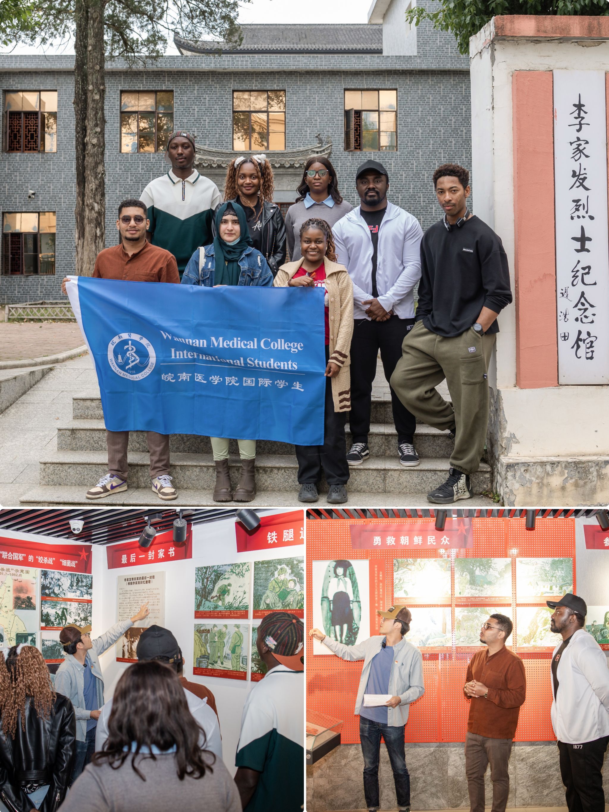 追忆峥嵘岁月,感悟革命精神。国际学生们怀着崇敬的心情走进李家发烈士纪念馆。在国际合作与交流处老师讲解下,他们认真聆听了李家发烈士的英勇事迹。李家发在抗美援朝战争中,为了保卫祖国和人民舍生忘死,壮烈牺牲,他的英雄事迹深深打动了每一位国际学生。来自津巴布韦的学生心爱感慨地说:“李家发烈士的精神非常伟大,他的奉献和牺牲让我深受感动,也让我对中国的历史和文化有了更深的理解。”此次参观活动,不仅让国际学生们了解了中国革命历史,更让他们感受到了中国人民坚韧不拔、英勇无畏的民族精神,让中国国情教育真正融入每一个国际学生心中。