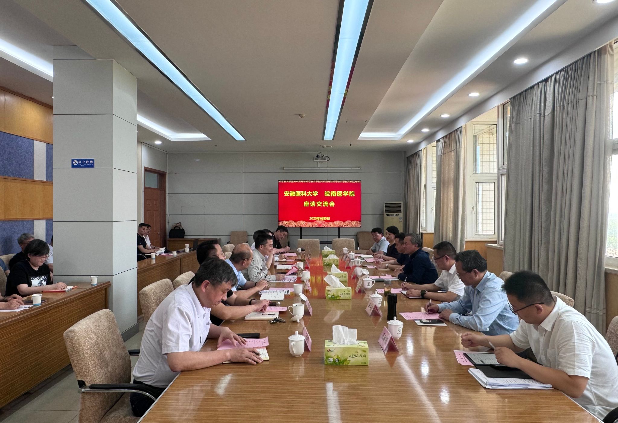 姚应水对翁建平一行的到来表示热烈欢迎,对安徽医科大学长期以来给予我校的支持与帮助表示衷心感谢。他详细介绍了我校近年来的发展情况,特别是在深化改革、学科建设、人才培养、科研创新等方面取得的显著成效。姚应水指出,当前学校正处于高质量发展的关键阶段,安徽医科大学在医学教育领域的丰富经验和卓越成就值得我们深入学习借鉴。希望两校以此次调研交流为契机,进一步深化合作,实现优势互补、互利共赢。