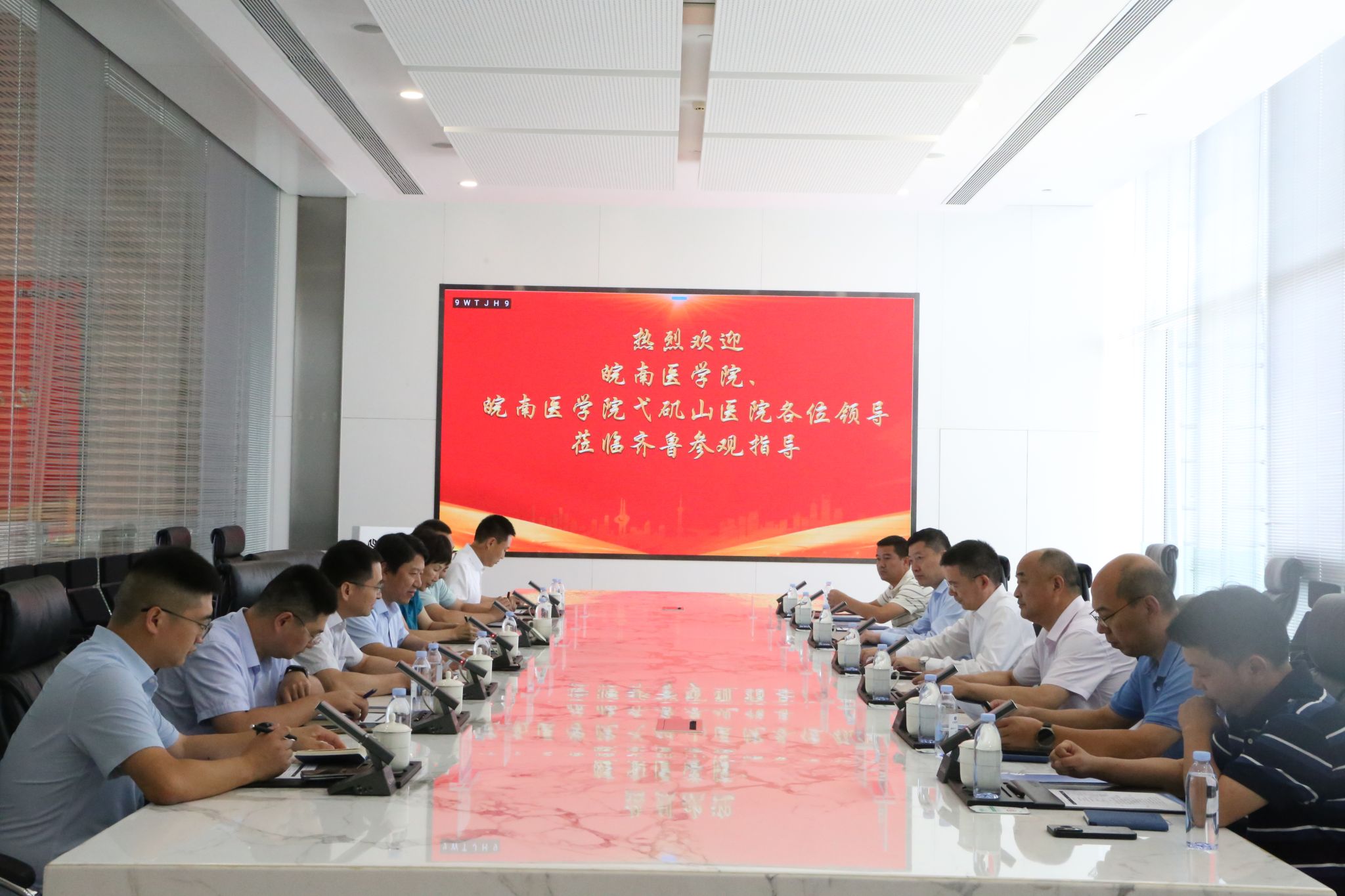 座谈会上,田勇对我校到访表示热烈欢迎,简要介绍了齐鲁制药的基本情况,表示希望与我校进一步深化全领域合作。姚应水对齐鲁制药的盛情接待表示感谢,介绍了我校的学科发展、科学研究、平台建设、人才培养、对外合作等方面的基本情况,表示双方可围绕学科建设、人才培养与就业、科研创新、临床医药研究等方面开展深入交流合作。韩永升详细介绍了芜湖地方产业现状、定量药理学传承、直属附院基本情况及产学研创中心建设等详细情况,并提出具体合作愿景。