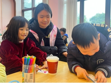 随后,同学们引导小朋友分组交流,分享自己曾经做过的“雷锋好事”。孩子们踊跃发言,讲述了自己帮助他人、爱护环境、勤俭节约等亲身经历,展现了新时代少年儿童的良好精神风貌。同学们将小朋友分享的故事认真记录在书签上,作为他们践行雷锋精神的珍贵纪念,帮助孩子们领悟“生活中的美好与幸福需要人人参与,主动奉献”。