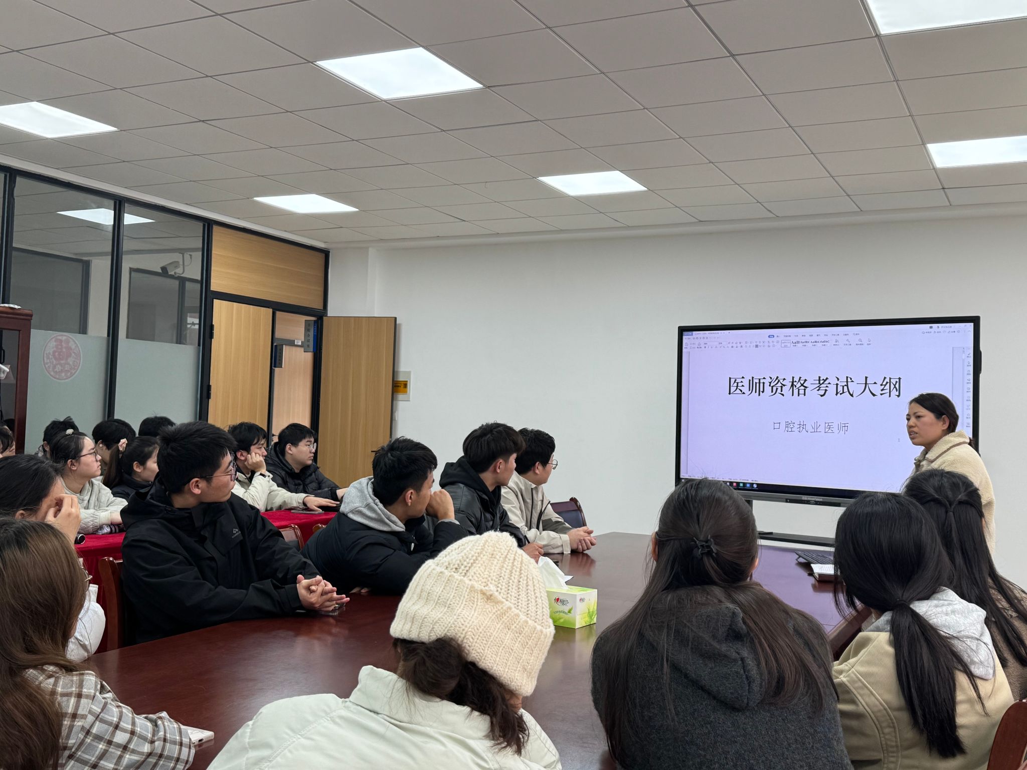 近日,口腔医学院在学院会议室召开执业医师课程学习指导会,学院副院长邓超、2022级口腔医学专业学生参会。会议由学院党委副书记张晋艳主持。