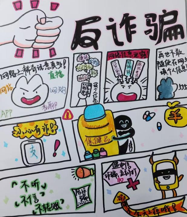 本次大赛相较于第一届校园反诈作品征集大赛,在去年短视频的基础上,创新增设了海报设计、漫画创作、反诈打油诗等多样化的参赛形式,吸引了全院学生的广泛参与。同学们才思泉涌,通过个人或小组的形式,紧密围绕“校园无诈,青春无忧”主题,全面涵盖网络刷单、冒充亲友、虚假贷款等多种诈骗形式,同时结合真实案例,以生动形象的画面、幽默风趣的语言、通俗易懂的标语直观揭露骗局,创作出一批富有教育意义的反诈作品,向电信诈骗“宣战”。经过严格评审,从近200件上交的作品中,最终评选出一等奖3名、二等奖5名、三等奖5名,优秀作品将在学院宣传平台展示,进一步扩大反诈宣传影响力,筑牢校园反诈坚固防线。