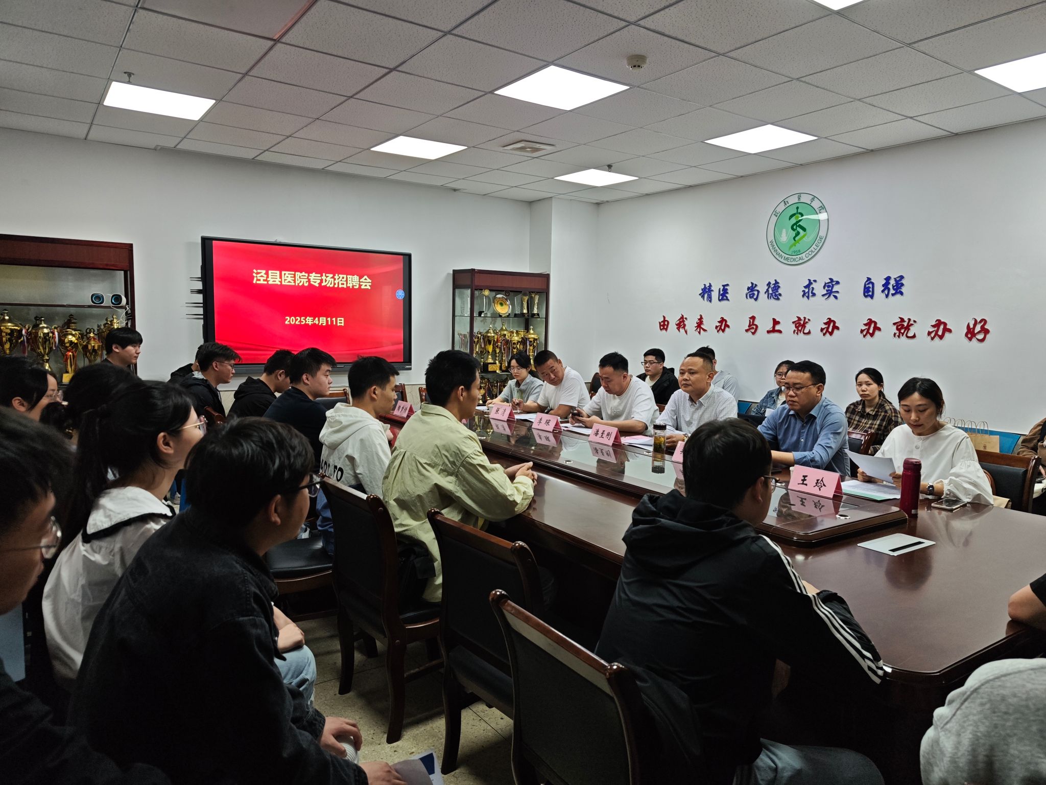 座谈会结束后,泾县医院在学院会议室开展专场招聘会,临床医学院及研究生学院共26名毕业生参加。医院分别从医院概况、人才培养计划、人员需求等方面介绍医院基本情况,并耐心解答同学们所关心的招聘流程、职业发展、薪资待遇、工作生活环境等问题。随后,毕业生积极投递简历,医院开展专场面试。