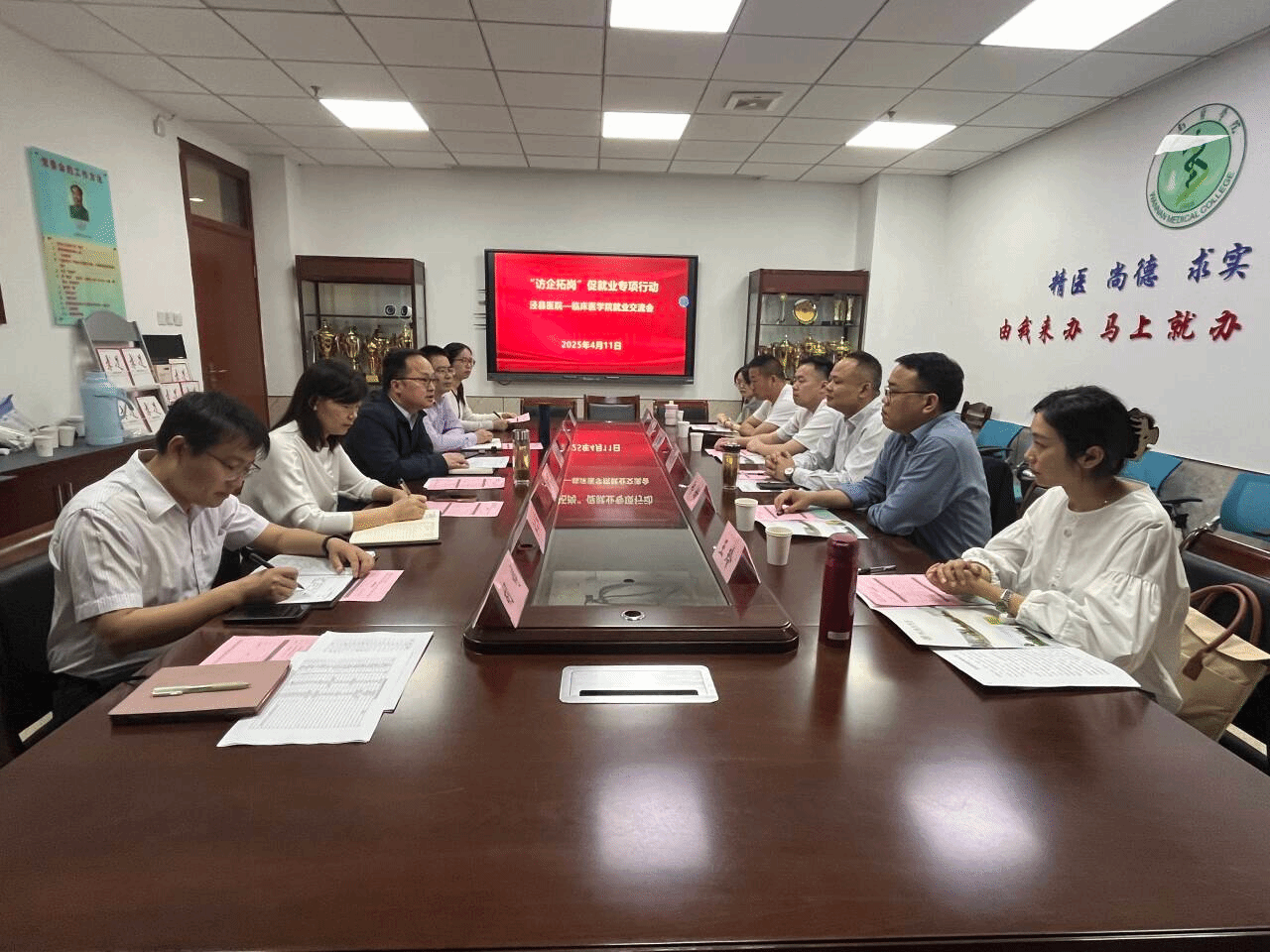 为拓宽就业渠道,切实做好2025届毕业生就业工作,临床医学院邀请泾县医院来校举办专场招聘会,学院党委书记方基勇、副院长陈祥攀、党委副书记陶香香、毕业班辅导员和学院秘书参会。