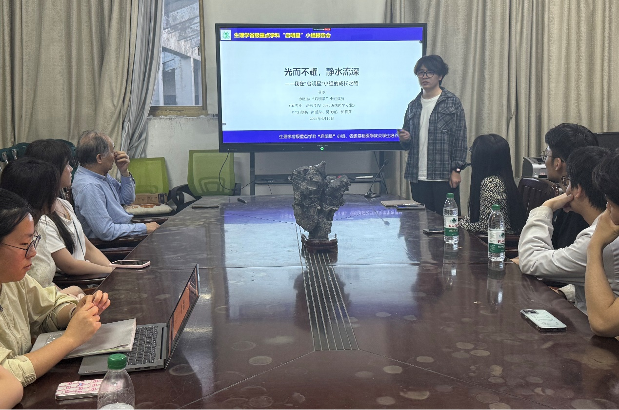 4月10日晚,生理学省级重点学科“启明星”小组在人文与管理学院生理学与神经生物学教研室举办创新型人才成长历程分享会。2021级“启明星”小组成员蒋晗以“光而不耀,静水流深——我在‘启明星’小组的成长之路”为主题,分享了自己作为创新型人才的成长历程。会议由汪萌芽教授主持,“启明星”小组指导教师、在校和毕业成员共100余人线上线下参加会议。