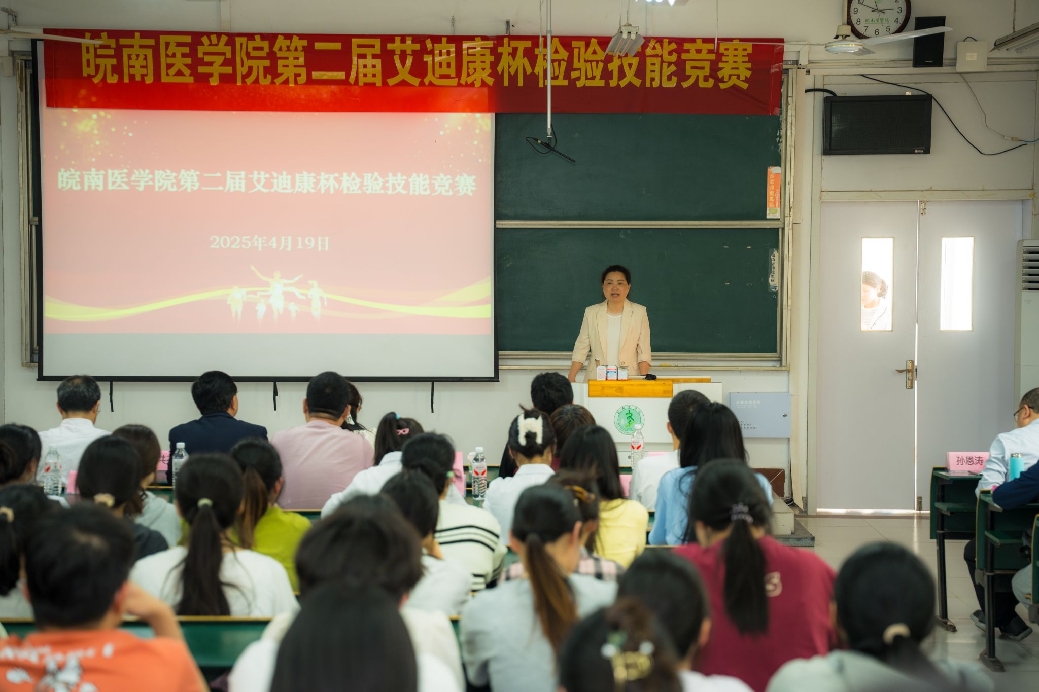 为深化教学改革,提升学生综合技能,4月19日,检验学院在滨江校区(南区)医学检验与卫生检验实验实训中心举办第二届艾迪康杯检验技能竞赛。来自2022级医学检验技术、卫生检验与检疫和2024级医学检验技术(专升本)专业的近两百名学子同台竞技,充分展现了新时代检验人的专业风采。合肥艾迪康医学检验实验室有限公司总经理许庆军到现场指导,裁判组由该公司相关专家、两所直属附院一线资深临床教师以及院本部教师组成。教务处处长黄月娥参加闭幕式并讲话,检验学院党委书记刘影、院长洪亮全程在比赛现场统筹协调。