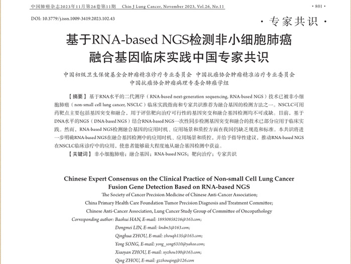 我校教师参与编写《基于RNA-based NGS检测非小细胞肺癌融合基因临床实践中国专家共识》
