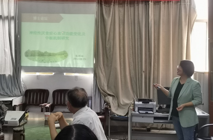 张环环以“神经性厌食症心血管功能变化及中枢机制研究”为题,为与会师生带来了一场精彩生动的报告。她分别从课题学术背景、研究内容、路径方案、结果及相关分析等方面着手,由浅入深、由表及里作了深入探讨和阐释。整场报告思路清晰,其精妙的课题设计、独到的见解讲解给与会人员留下深刻印象,并给在场青年教师、研究生和“启明星”小组成员的科研创新带来全新的启发与思维。