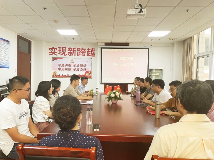 9月6日下午,口腔医学院在学院会议室召开口腔医学院科研交流分享会。分享会由口腔医学院副院长院长邓超主持,学院党委书记院长柴琳,以及学院全体教职工成员参会。