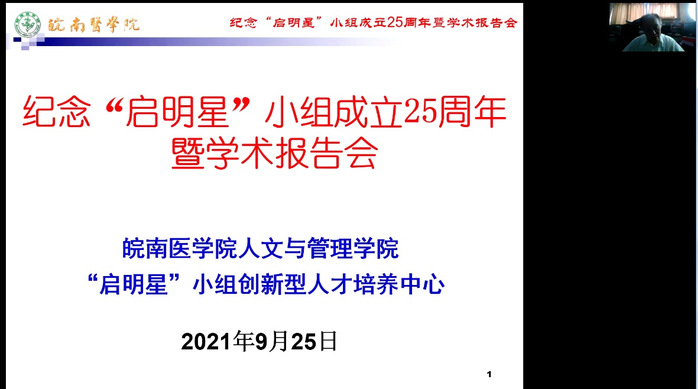9月25日上午,人文与管理学院暨“启明星”小组创新型人才培养中心举行纪念“启明星”小组成立25周年学术报告会,报告会以腾讯会议平台线上的形式举办,会议由“启明星”小组创始人、生理学省级学术与技术带头人汪萌芽教授主持,“启明星”小组指导教师、25年来已毕业和在校的部分小组成员参加了报告会。
