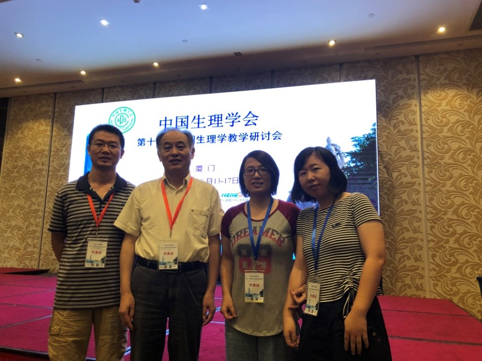 会上,我校生理学教学团队共提交会议论文摘要4篇,其中郑超老师的“创新理念始终贯穿生理学教学的实践与思考”被遴选为大会报告,报告指出在开展生理学特色教学、培养创新复合型人才中,我们积极响应国家号召、高度符合社会需要,引起与会者的广泛共鸣。汪萌芽老师的“以创新型人才培养为导向的实验室开放设计与实践”、张环环老师的“以生物-心理-社会医学模式为导向的《生物医学概论》课程建设初探”、徐爱萍老师的“面向普通医学院校医学影像学专业的生理学双语教学探索与实践”进行书面交流。同时,汪萌芽教授作为中国生理学会常务理事、人民卫生出版社《生理学》第9版教材的作者,应邀作了题为“有关细胞电生理学教学的若干问题”的大会报告。他紧密结合生理学教学难点,以及解决实际教学问题的解惑之道,进行了详细阐述。汪教授还作为特邀嘉宾在“生理学教学的今天和明天”的主题讨论中,提出了“不忘初心”——加强创新能力训练、“面向生命”——重视心理生理学培养以适应“生物-心理-社会医学”模式的创新型人才等观点,给在座的全国生理学教育工作者们以新的启迪。会议期间,汪萌芽还作为继任委员出席了新一届中国生理学会教育工作委员会会议、作为颁奖嘉宾为微课比赛获奖者颁奖。此外,我校生理学教学团队在暑期期间还应邀参加不同类型的教学交流活动。8月6日,汪萌芽教授应邀为“中国生理学会生理和行为学实验培训班”作了题为“脊髓运动神经元的细胞电生理技术与突触传递研究”的特邀专题报告,得到与会者的一致好评。